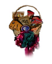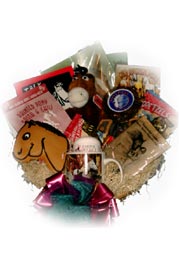 basket has lots of yummy equi-themed snacks